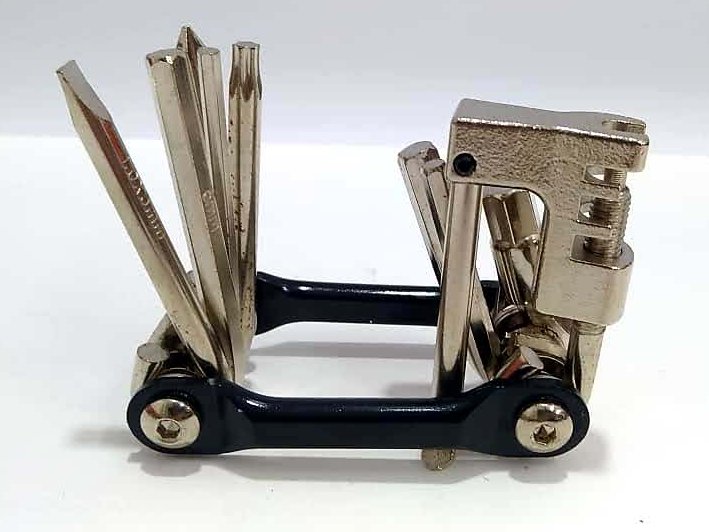 Chave Canivete Para Bicicleta 11 funções Chave de Corrente, ótima para reparos e apertos na bike antes, durante e após o pedal. Seu tamanho compacto é de fácil armazenamento e transporte para qualquer lugar em que for pedalar. As chaves compostas de aço inoxidável, garantem a qualidade e durabilidade do produto. Destaque para chave de corrente embutida no conjunto.